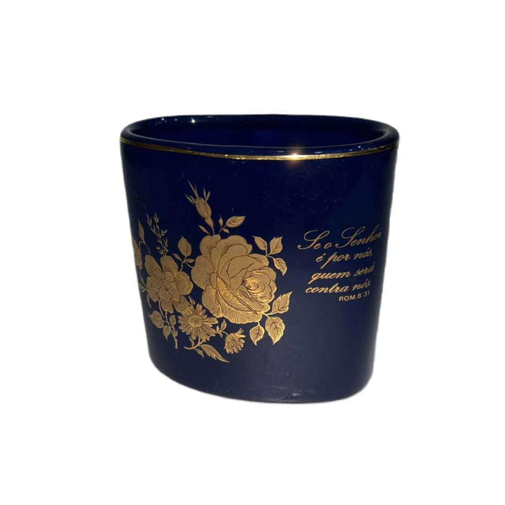 Se você procura uma peça que una funcionalidade e espiritualidade em um design elegante, este pote oval em porcelana azul cobalto é a escolha perfeita. Adicione um toque de beleza e significado à sua casa ou escritório com esta peça encantadora